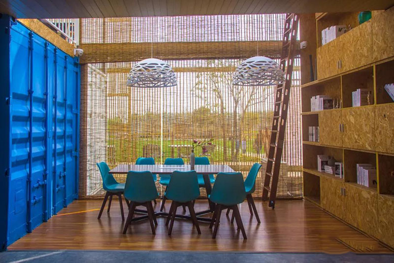 采用木材围挡、集装箱墙体的趣乐中心,是登高观景的好去处,也是科技迷和手工迷活动的“领土”。一楼为活动休息&体验区:72变VR游乐空间、电子枪飞碟、体感滑雪;二楼为皮艺、木艺、陶艺手工DIY课程空间;三楼为观景露台——那张坐在网红彩虹椅上的航拍照,就是在那儿拍的。